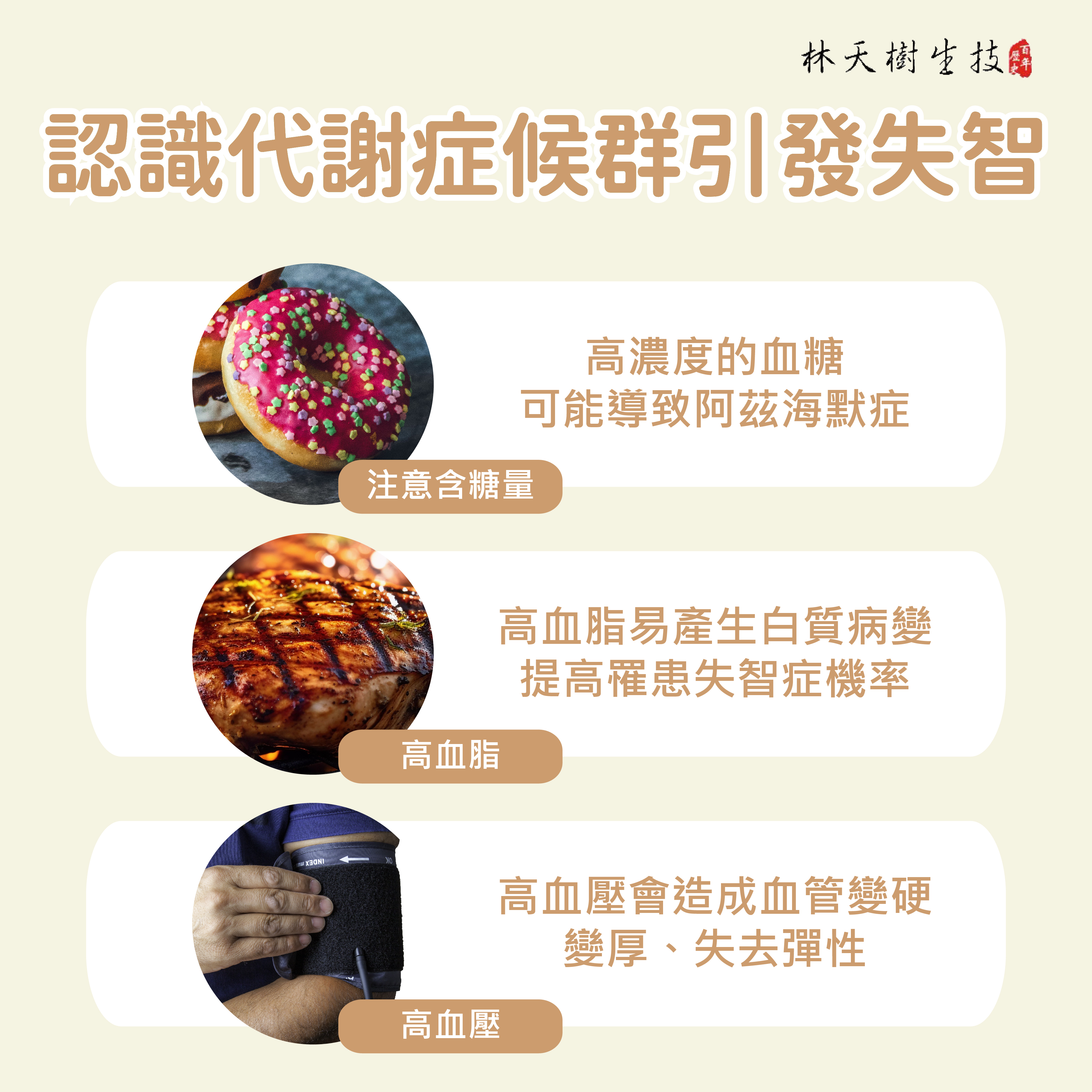而高血壓、高血脂、高血糖引發的代謝症候群,是引發失智的高風險族群之一。