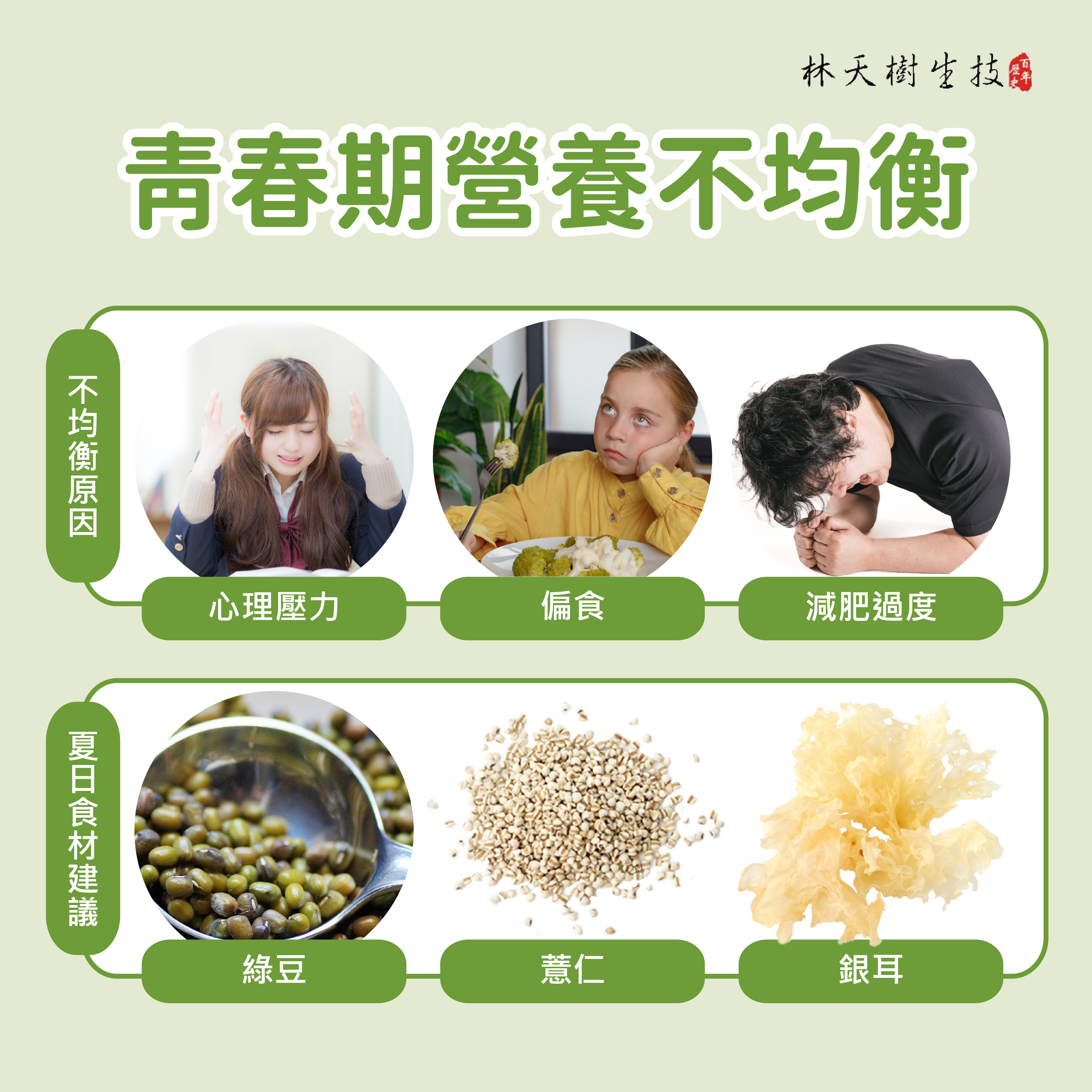 青春期是決定一生體質、心理、情商與發育的關鍵期。因此,均衡的營養、充足的睡眠、適當的運動,以及草本保健,都能為一生健康打下良好基礎。