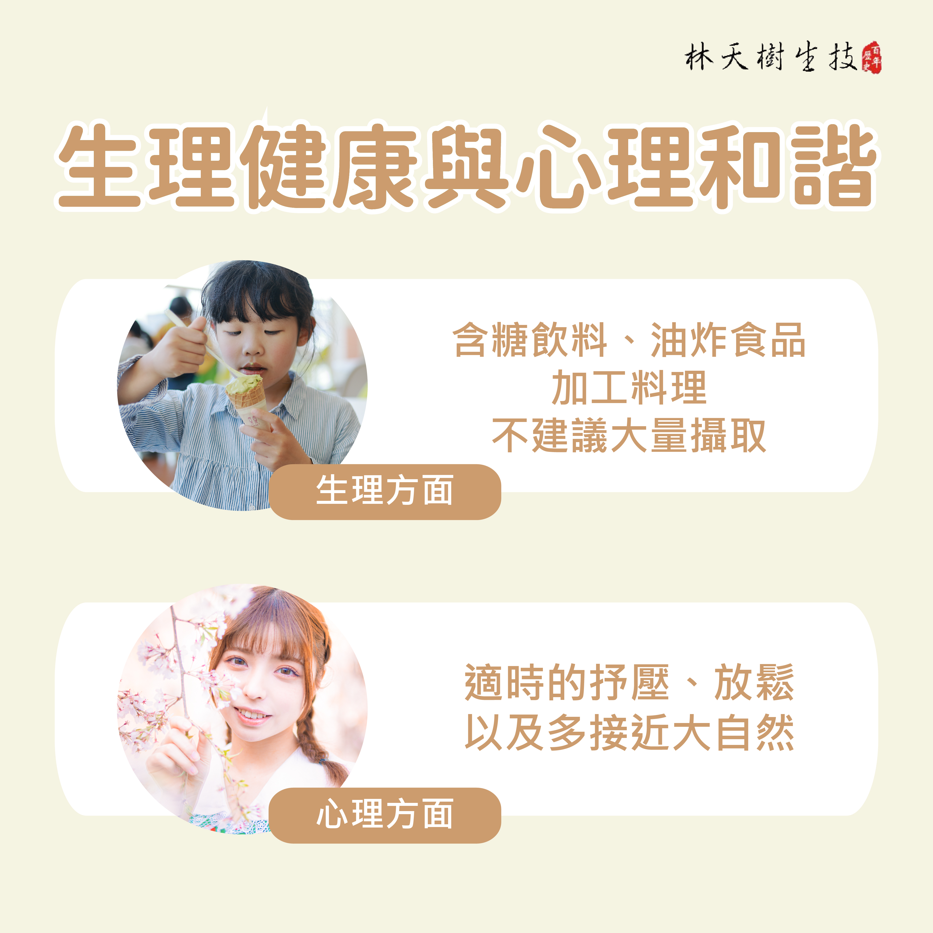 生理方面:含糖飲料、油炸食品、加工與精製料理,不建議大量攝取。