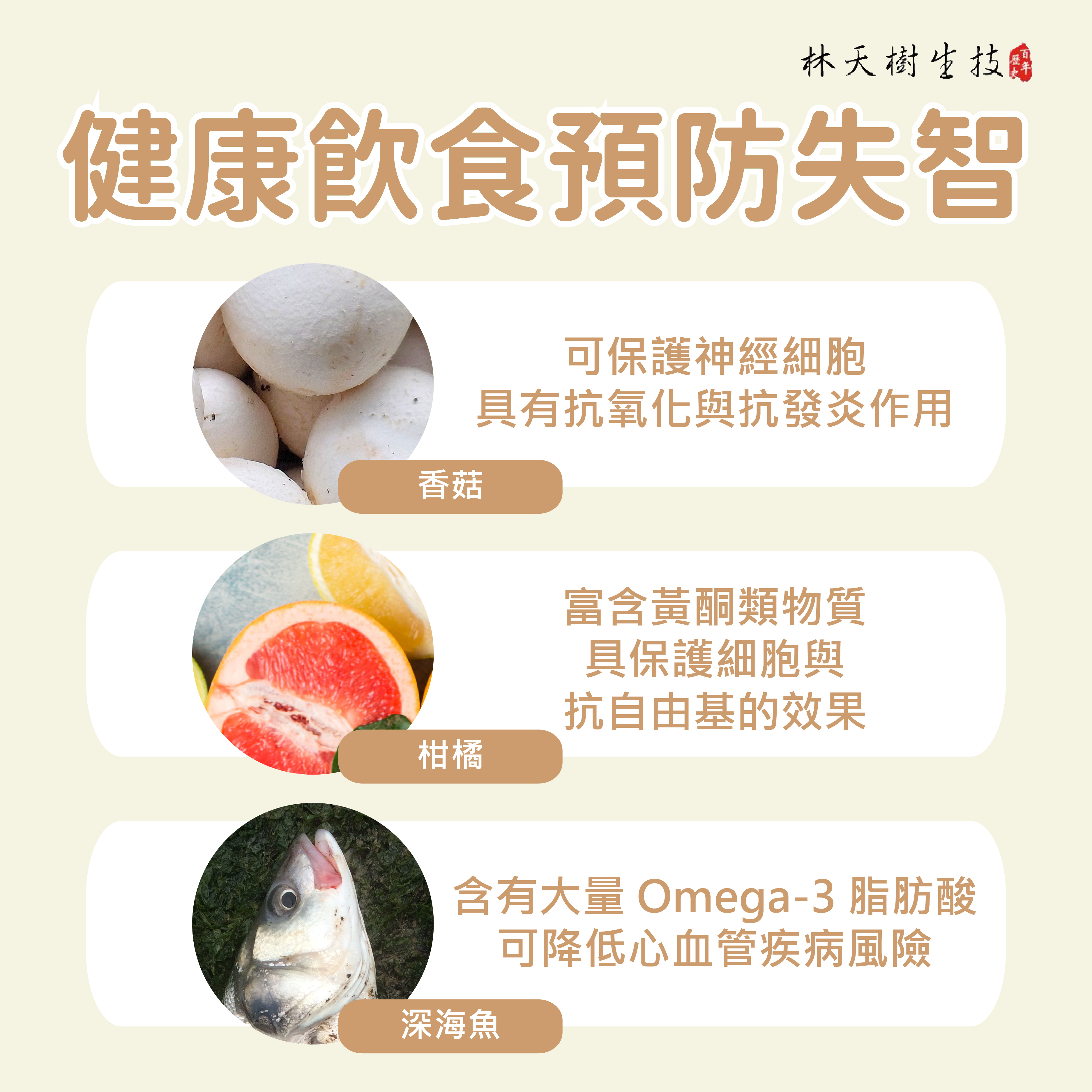 - 香菇:可保護神經細胞,具有抗氧化與抗發炎作用。