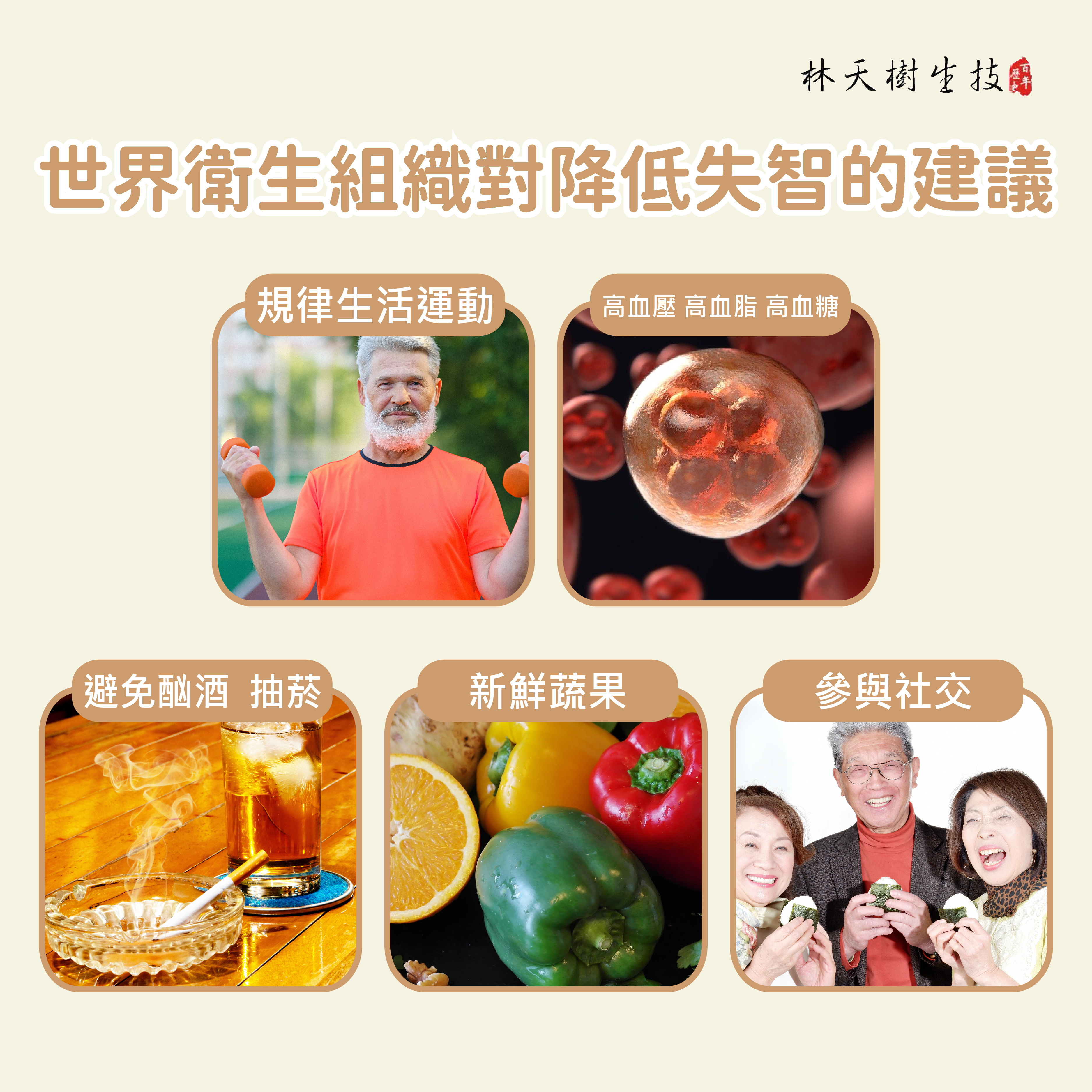 失智是全身的生理、心理退化性疾病,也就是除了血壓、血脂、血糖的數值要重視,聽力、視力與肌肉的活動力亦不可忽略。