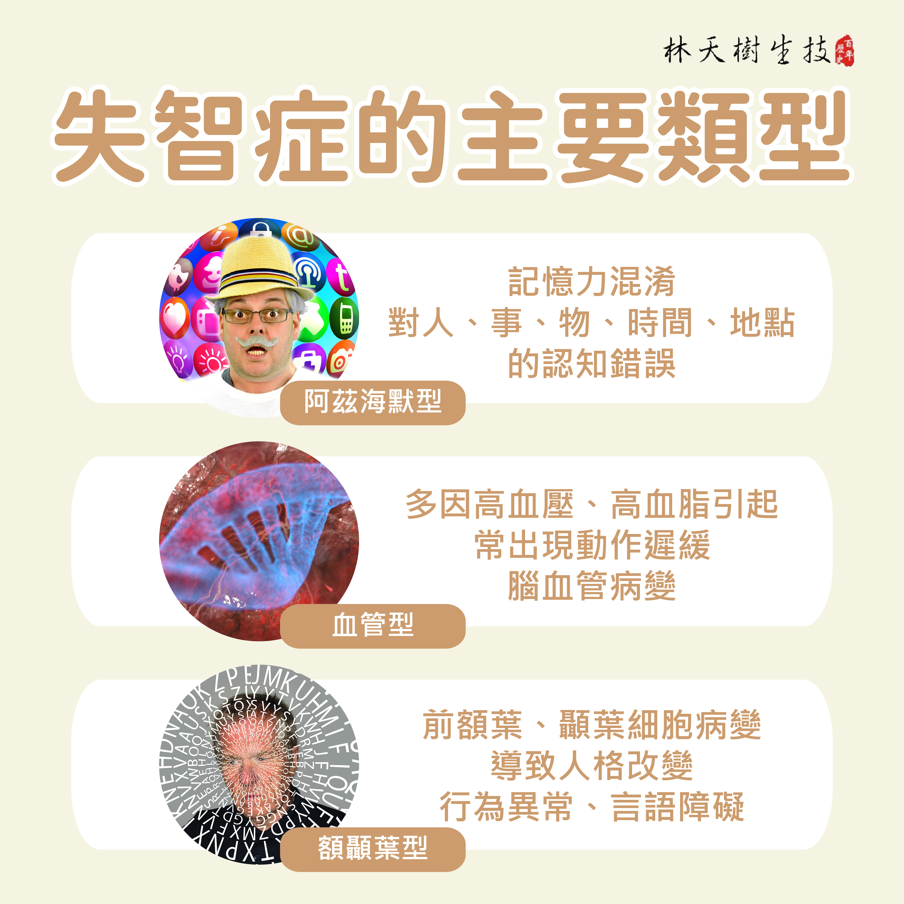失智症並不是自然老化,而是生理、心理系統性的疾病。其主要類型如下: