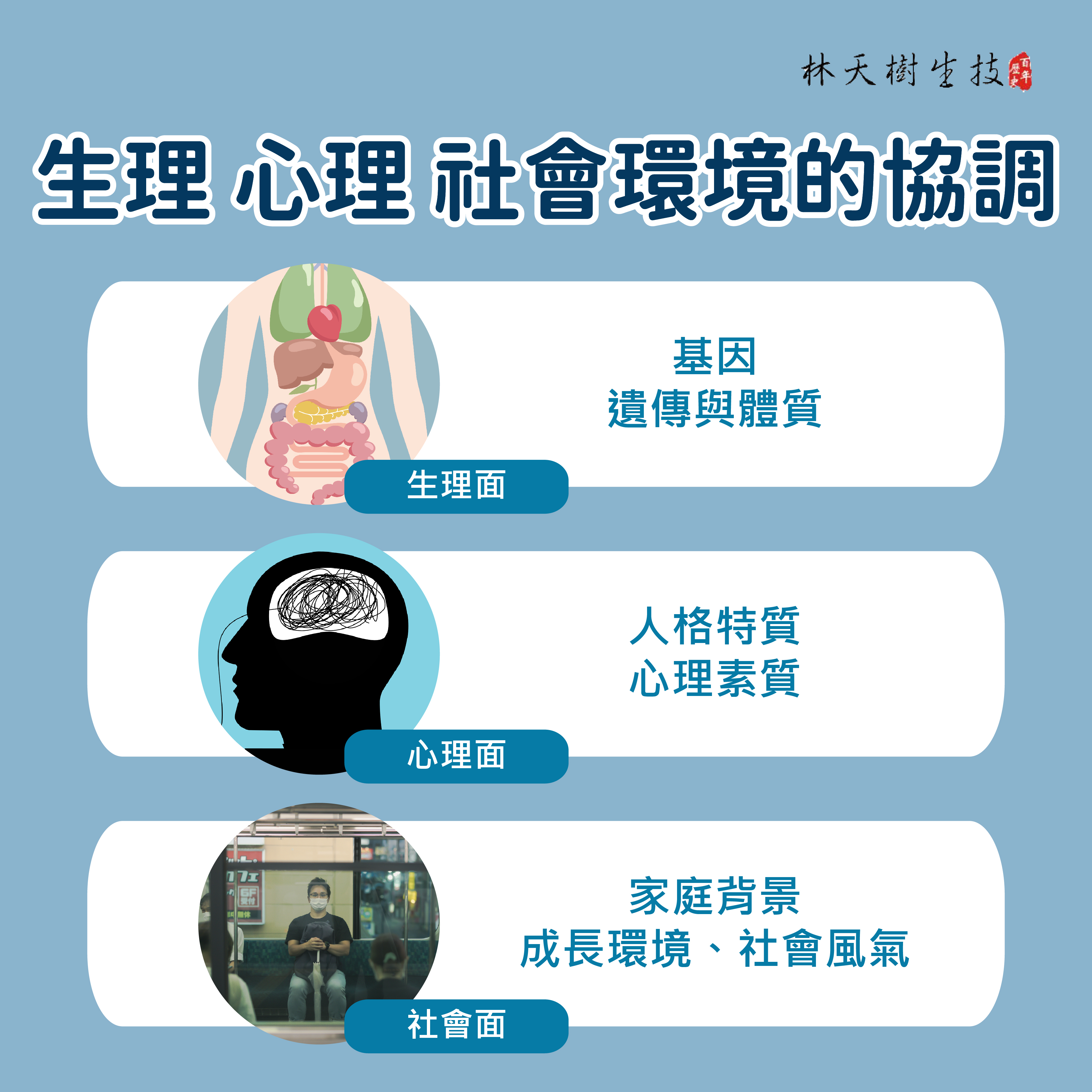 生理、心理、社會環境的協調: