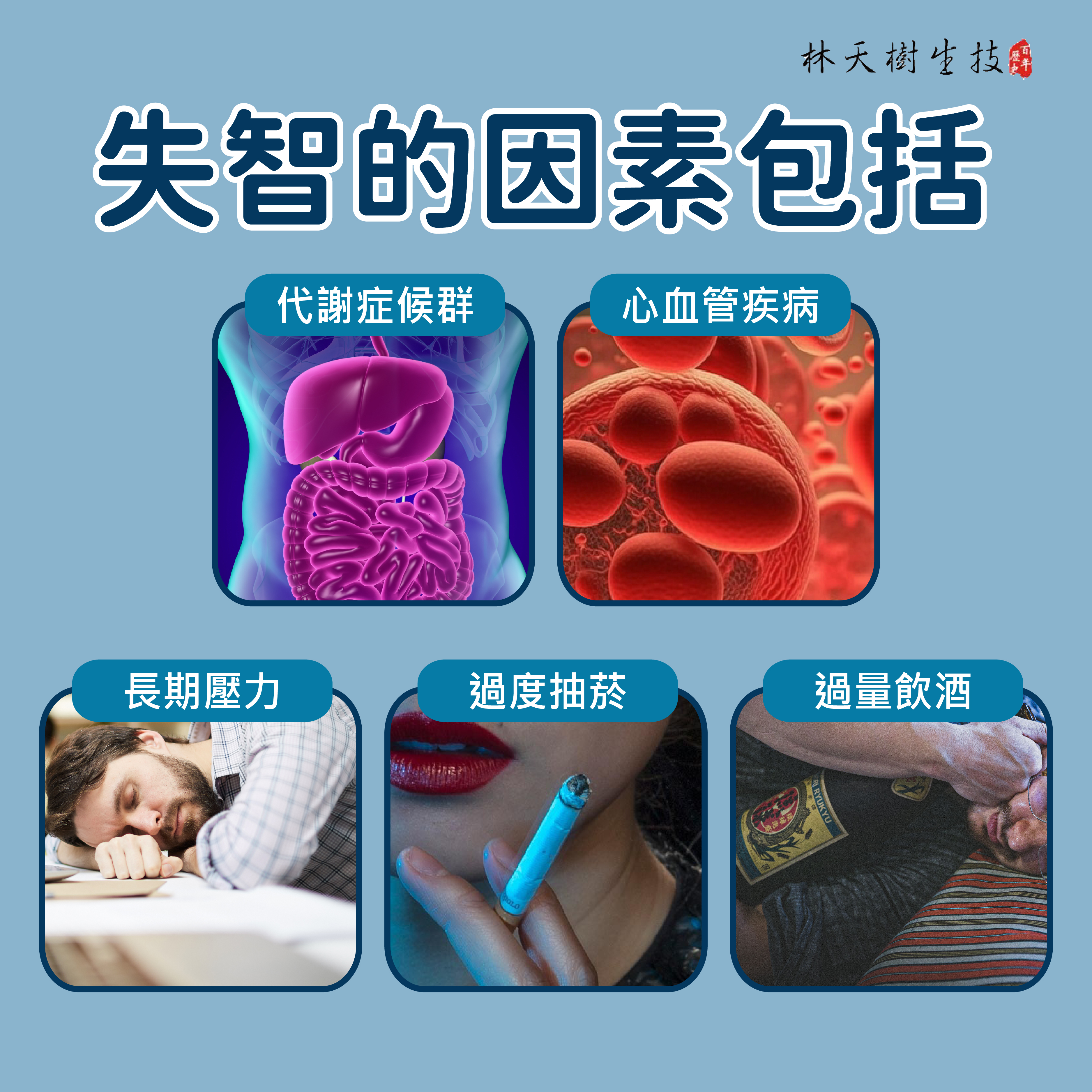 統計數據顯示,導致失智的因素包括: