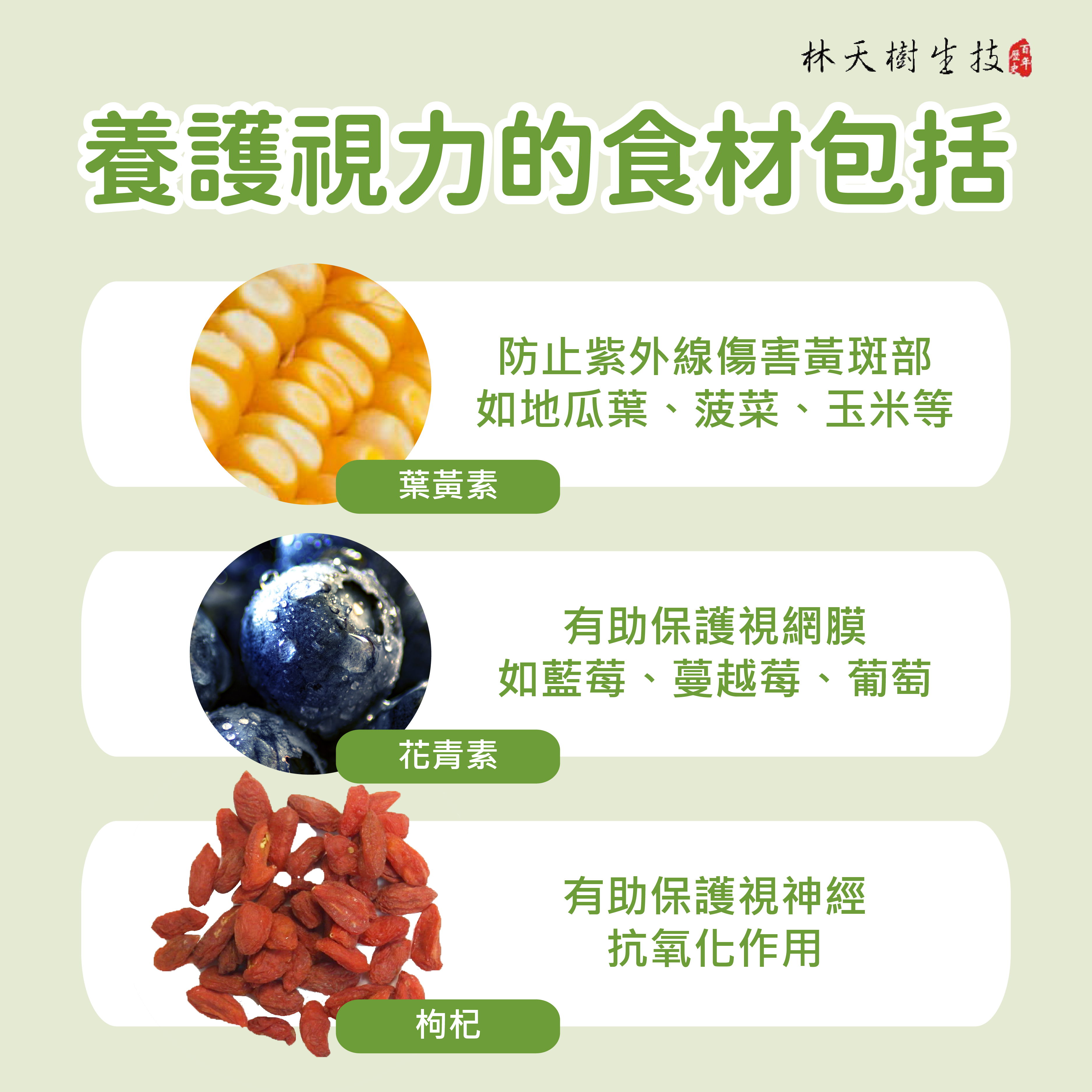 - 枸杞:有助保護視神經、抗氧化作用。